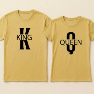 Perfect for gifting, pre-wedding shoots, birthdays, and romantic celebrations, each set includes two matching t-shirts featuring elegant King and Queen designs.