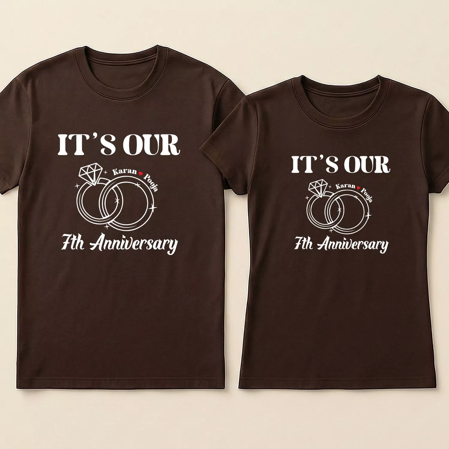 Whether it’s a planned photo session or a spontaneous anniversary moment, these matching tees elevate the experience. The ring design paired with the 7th anniversary theme makes every picture special and memorable.