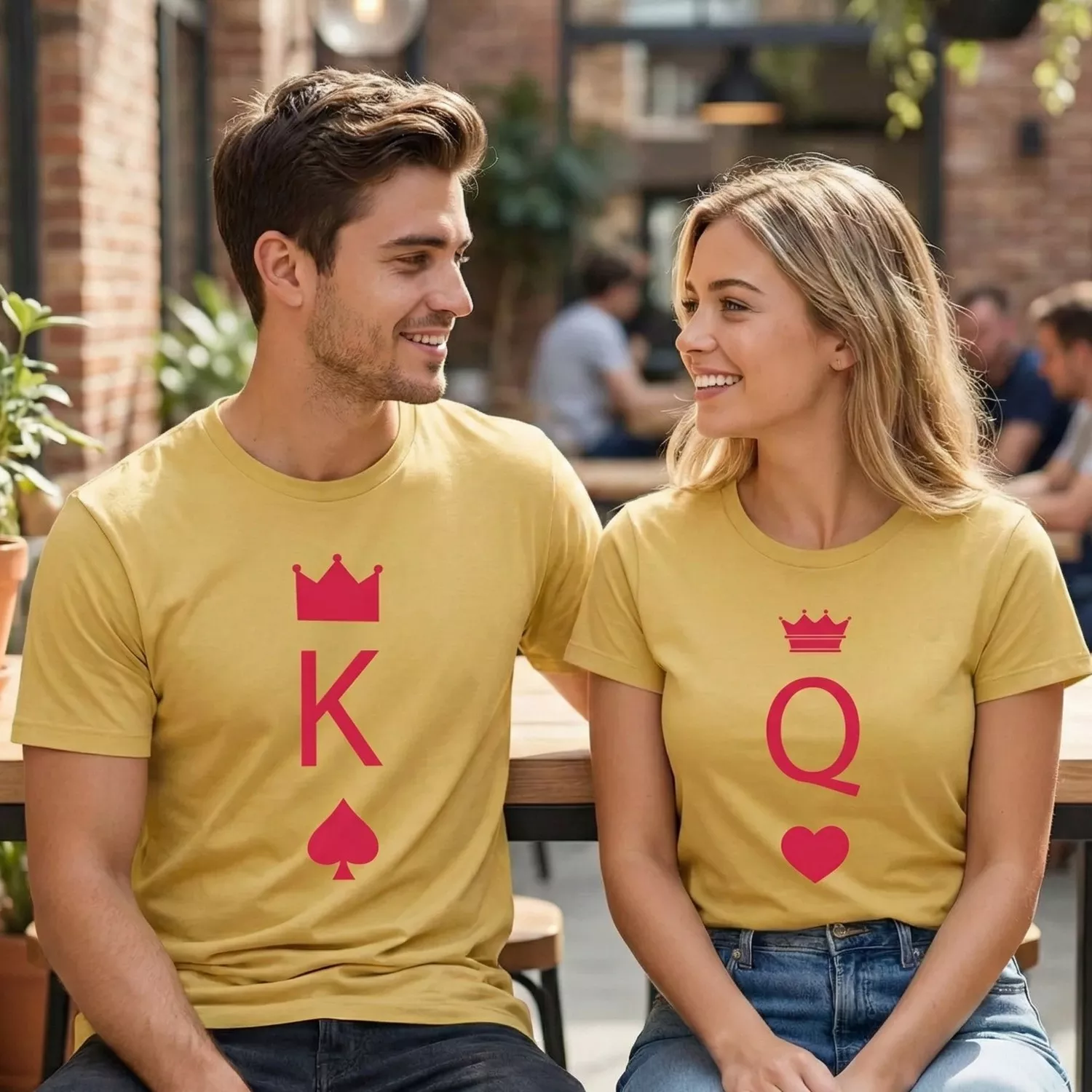 The concept of the King and Queen in a deck of cards has long represented power, partnership, and hierarchy. In many card games, these two cards hold significant value when played together. By wearing this design, you are playfully acknowledging that you are a team. To understand more about the history and cultural impact of these symbols, you can read about the history of the Playing card on Wikipedia. This historical context adds a layer of depth to your fashion choice, moving beyond simple matching colors to a design with heritage.