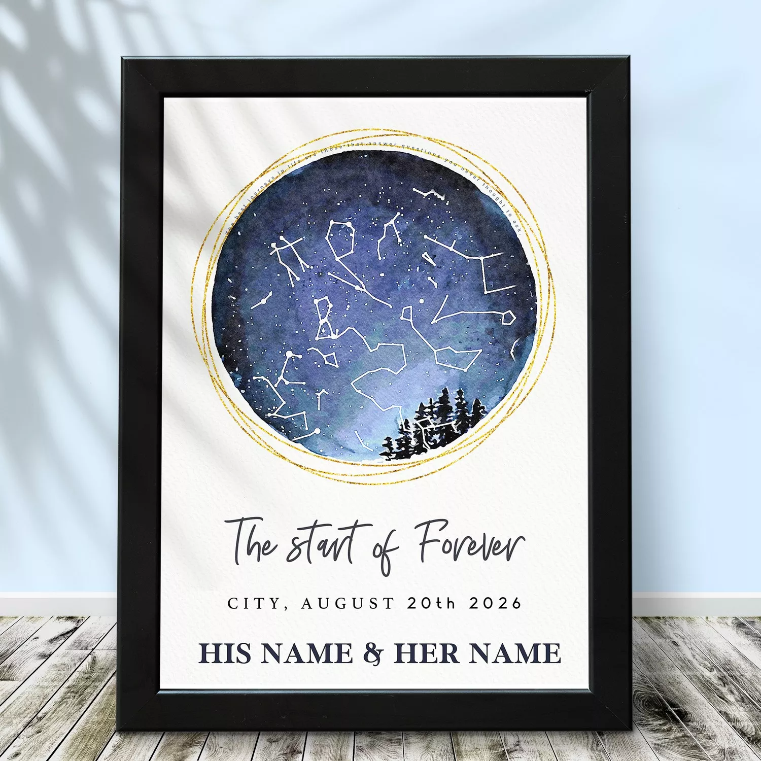 Printed on high-quality material and framed for a premium finish, it’s a timeless keepsake for couples.