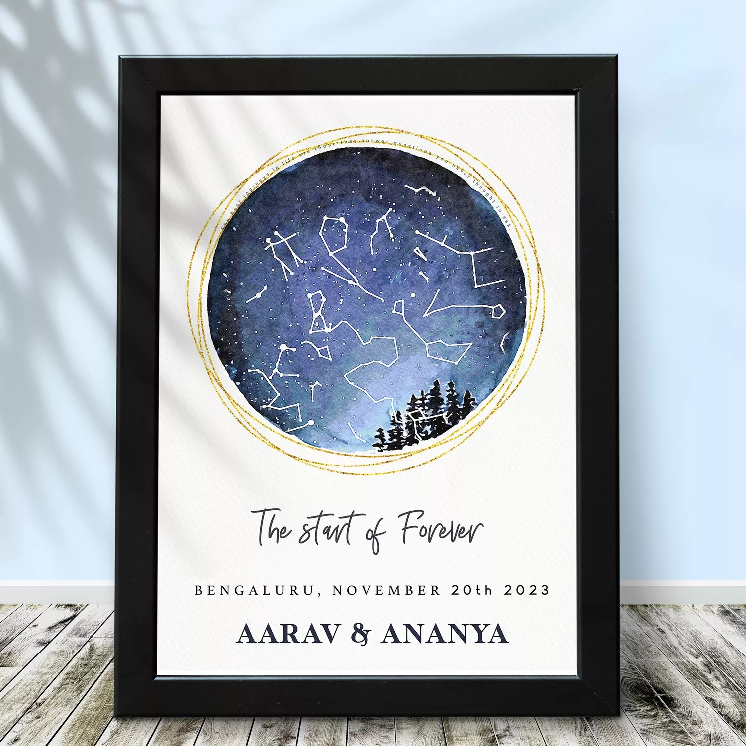 Designed with a minimal, elegant aesthetic, this star map frame becomes a meaningful décor piece for bedrooms, living rooms, or offices. Whether you’re celebrating a relationship milestone or looking for a thoughtful gift, this personalised wall frame captures a moment that will never be forgotten.