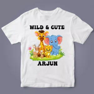 This personalized kids t-shirt brings together fun, imagination, and identity — featuring adorable jungle animals and your child’s name printed front and center.